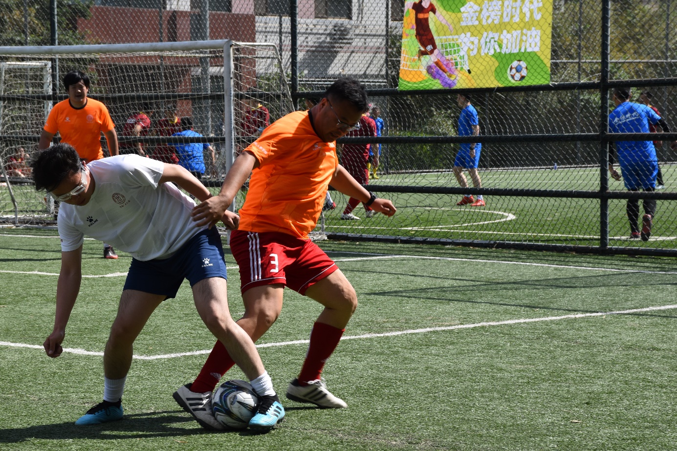随着裁判一声哨响,金榜时代总经理杨朝晖开球,比赛正式拉开帷幕。
