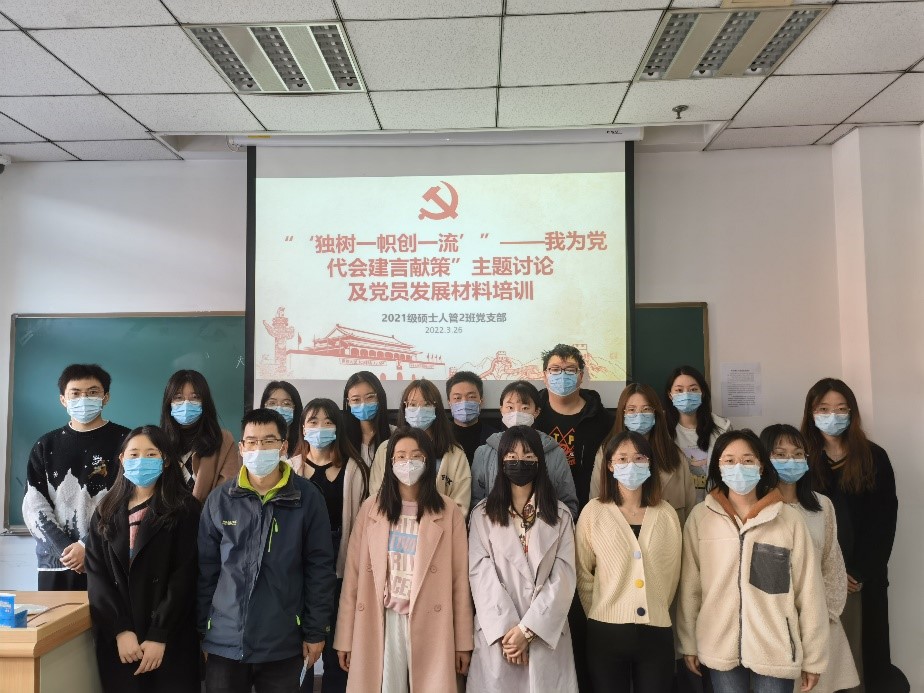 3月26日,色情动漫 2021级硕士人力资源管理二班党支部开展“‘独树一帜创一流’——我为党代会建言献策”主题讨论及党员发展材料撰写规范培训。会议由党支部书记金铭主持会议,支部全体党员和积极分子参加会议。