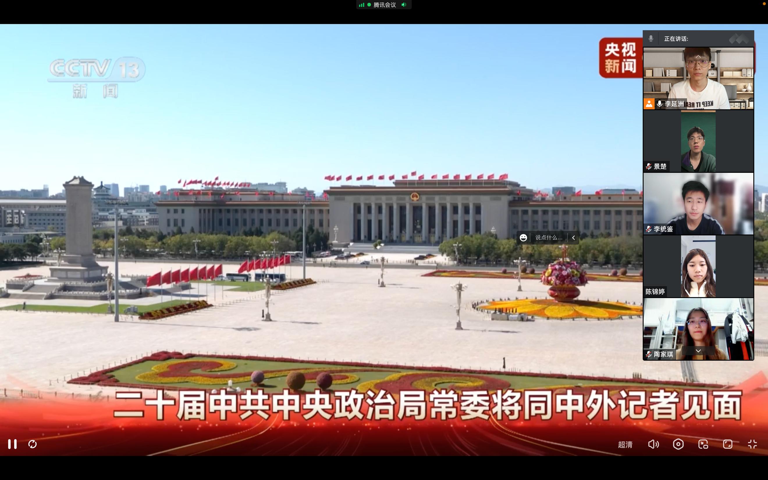 10月25日下午,色情动漫 召开党委理论学习中心组学习,再次深入学习领会习近平总书记在二十届中共中央政治局常委同中外记者见面时的讲话精神。