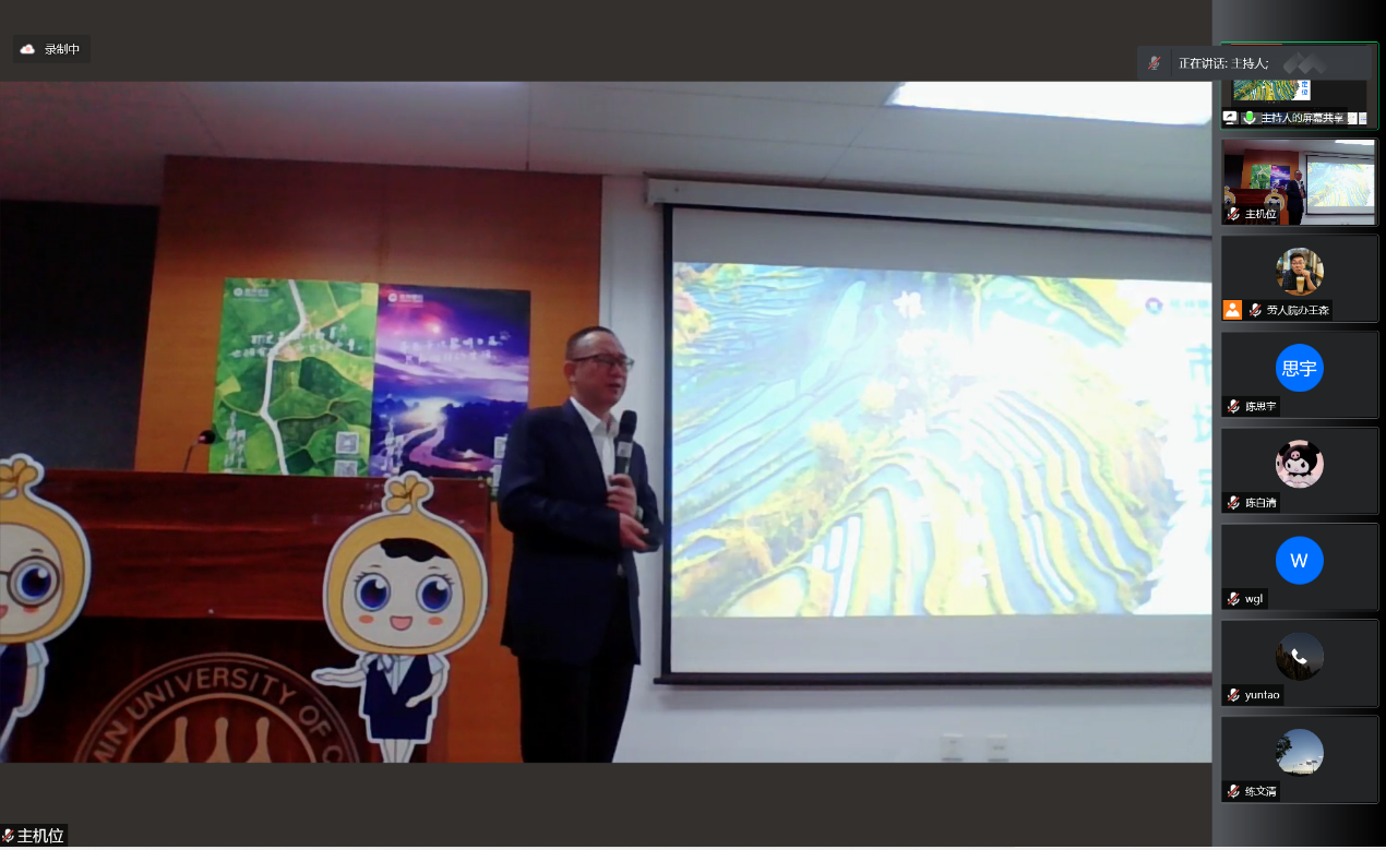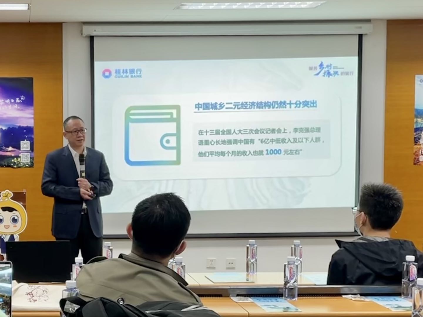 首先吴东校友为大家介绍了桂林银行的现状和未来规划。通过讲述桂林银行未来的发展战略,他为大家阐释了乡村振兴战略的重要意义和光明前景。接着,他为大家分享了自己的职业生涯案例,他提出在当今的时代,找一个值得自己为之奋斗一生的事业或方向非常重要,对事业有梦想、有追求,我们的职业生涯就不知不觉地延长了,创造的价值也是不可估量的。最后,希望未来可以和在座的同学与校友一同在波澜壮阔的乡村振兴时代洪流中书写传奇。