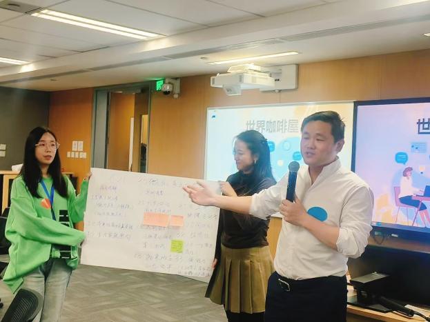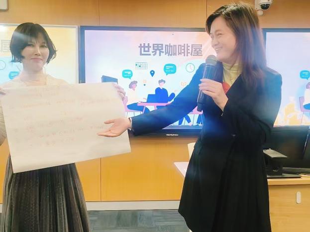 本次活动的高潮环节为 “世界咖啡屋” 互动讨论。六位经验丰富的校友担任 “摊主”,围绕 “35岁危机与职业天花板”“工作与家庭平衡策略”“人工智能在行业中的应用挑战” 等核心议题,引导现场校友分组展开深度交流。讨论过程中,思维碰撞频繁,灵感火花不断,校友们既解决了个人困惑,也挖掘出潜在合作机会。
