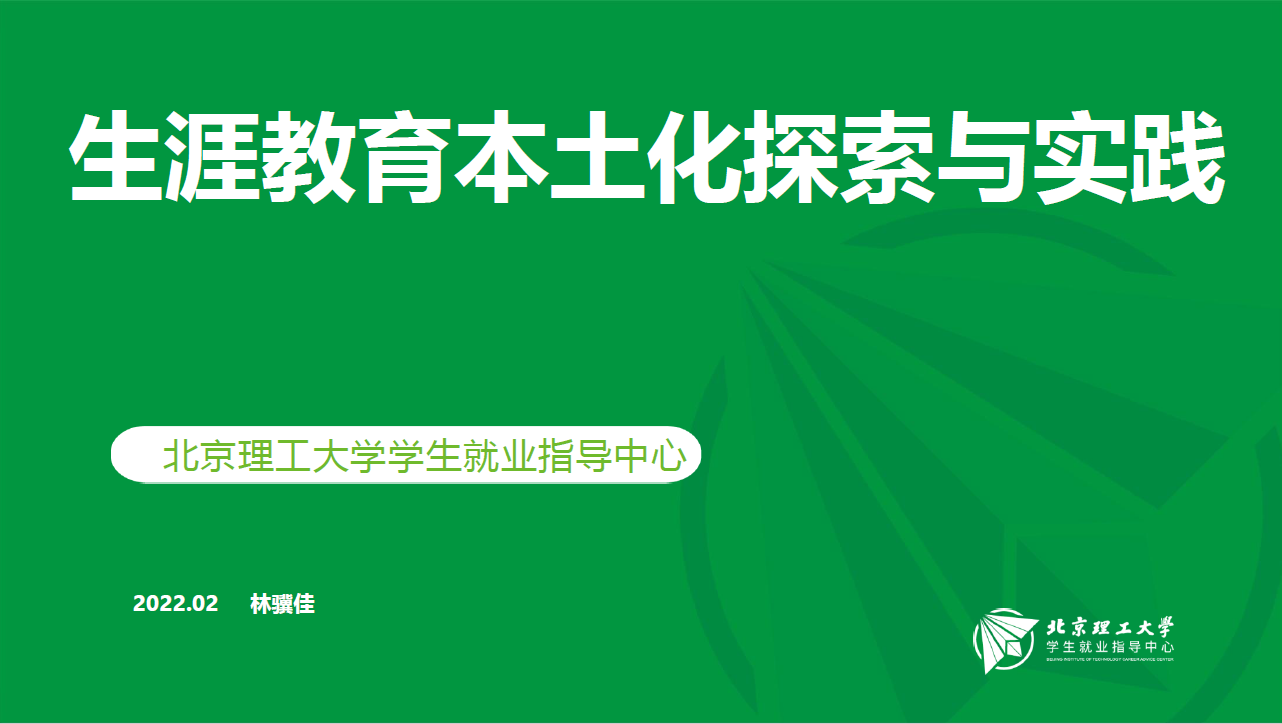 林骥佳老师的报告主题为“生涯教育本土化的探索与实践”。林骥佳老师首先介绍了北京理工大学学生就业指导中心的基本情况,提出开展职业生涯教育本土化探索的必要性。然后林老师介绍了北理工学生就业指导中心四方面的工作实践,包括以队伍建设为抓手,夯实职涯教育基础;从供给侧改革,完善职涯教育平台;以工作室建设为牵引,全面推进职涯教育;以生涯教育本土化为目标,打造生涯教育特色品牌。最后,林老师提出了五阶段生涯思考圈,分别为身在何方、欲往何处、有何资源、如何到达、怎知到达。王桢老师就第一课堂课程建设、学校职业指导教师的队伍建设与职业发展、学校和院系联动育人等方面与林骥佳老师进行了探讨。