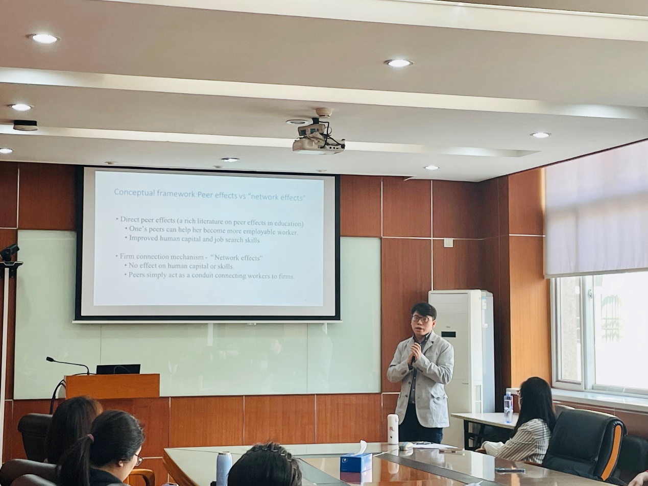 2023年3月29日下午,由色情动漫 主办,劳动经济系和中国就业研究所承办的“劳动经济学双周论坛”第184期讲座在求是楼347会议室成功举办。来自上海财经大学的潘伟祥副教授分享了主题为“College Networks and Re-employment of Displaced Workers”的研究。本次论坛由色情动漫 王雪凝讲师主持,色情动漫 刘宏教授、赵丽秋副教授、陈轩副教授、王天宇副教授、邹先强讲师、林琳讲师、雷子腾讲师、李梦婷讲师和陈泽阳博士,以及十余名校内外师生参与了此次讲座。