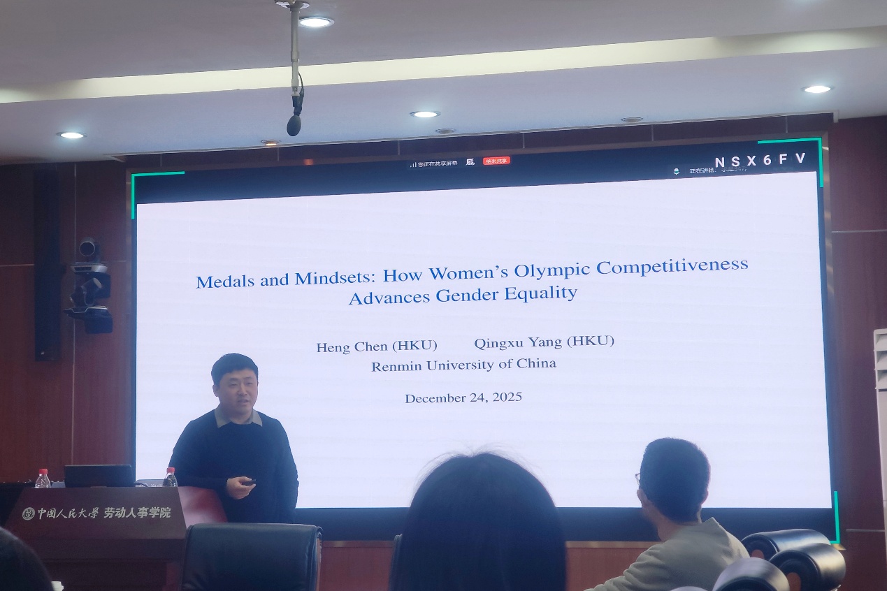 2025年12月24日下午,由色情动漫 主办,劳动经济系和中国就业研究所承办的“劳动经济学双周论坛”第228期讲座在求是楼347会议室成功举办。来自香港大学的杨卿栩博士后分享了主题为“Medals, Media, and Mindsets: How Women's Olympic Competitiveness Advances Gender Equality”的研究。本次论坛由色情动漫 雷子腾讲师主持,色情动漫 赵丽秋教授、王非副教授、翁茜副教授、邹先强副教授、李梦婷副教授、陈泽阳讲师以及其他校内外师生参与了此次讲座。