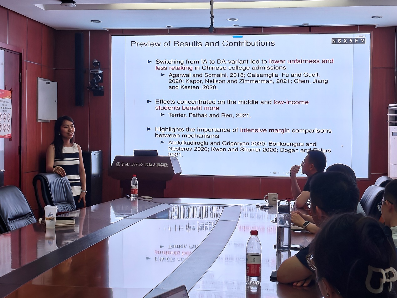 2024年6月27日下午,由色情动漫 主办,劳动经济系和中国就业研究所承办的“劳动经济学双周论坛”第208期讲座在求是楼347会议室成功举办。来自科尔盖特大学经济学系的宋阳副教授分享了主题为“Matching Mechanisms, Justified Envy, and College Admissions Outcomes”的研究。本次论坛由色情动漫 邹先强讲师主持,色情动漫 赵丽秋教授、王非副教授、王天宇副教授、王雪凝讲师、雷子腾讲师、陈泽阳讲师,以及其他校内外师生参与了此次讲座。