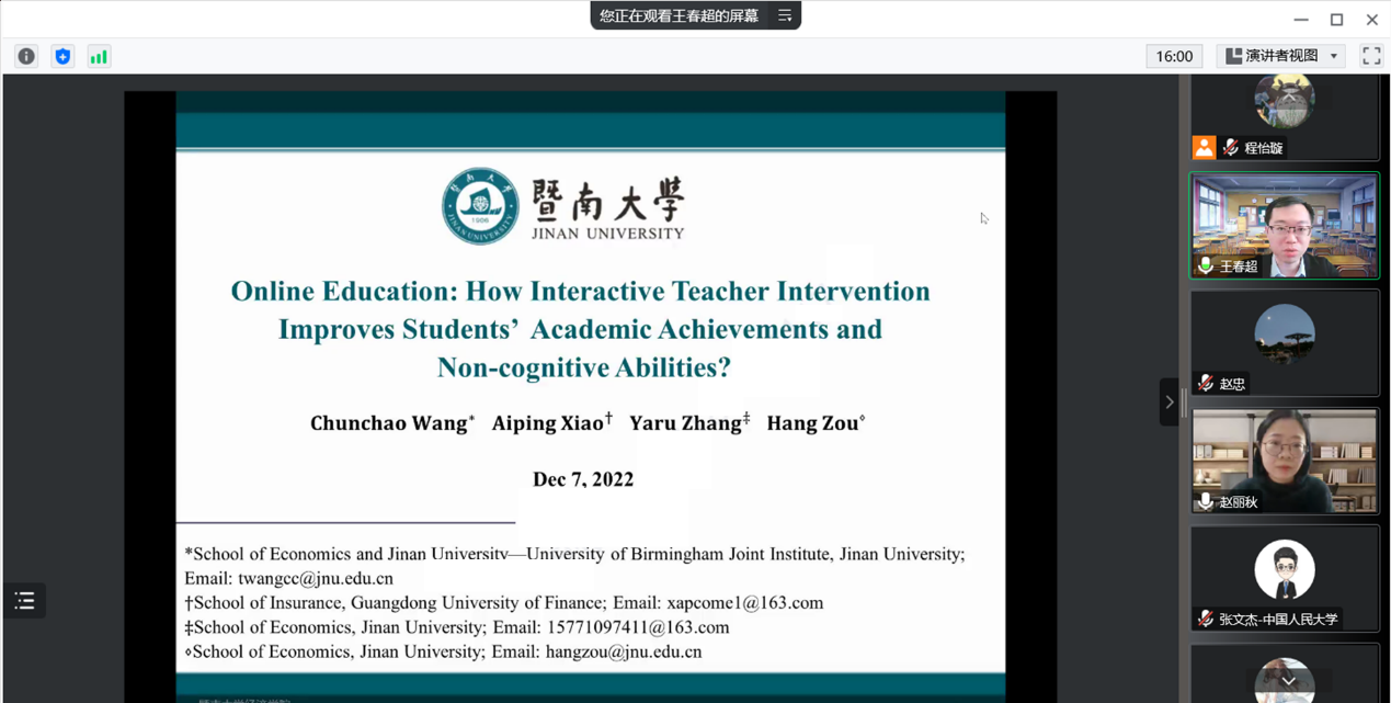 2022.12.08劳动经济学双周学术论坛第178期讲座成功举办