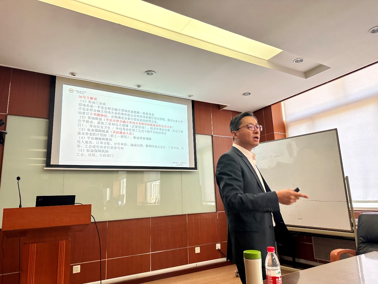 法学研究所社会法室王天玉副主任、副研究员进行了题为《劳动变革、制度变革与思维变革》的学术分享。劳动关系系吴清军教授、张皓副教授以及多名本科和硕、博士研究生共同参加了研讨。