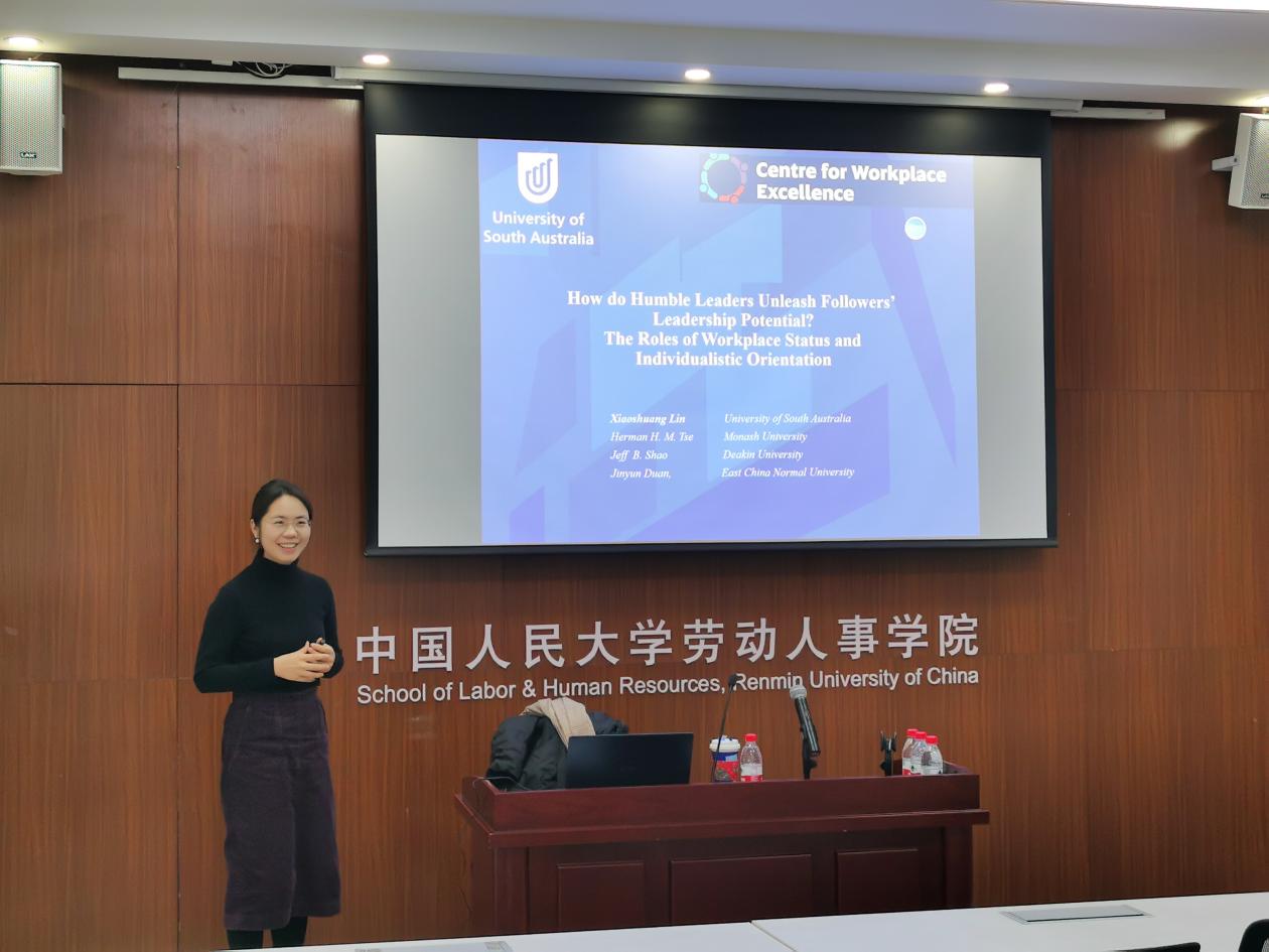 2023年12月21日上午,色情动漫 40周年院庆系列学术讲座暨“人力资源管理系2023年秋季学期半月谈”第117期讲座在求是楼343会议室成功举办。来自南澳大利亚大学商色情动漫 林晓霜高级讲师作题为“谦卑型领导和员工领导潜能:基于期望地位理论视角”的讲座,介绍其发表的关于谦卑型领导的最新研究成果。此次论坛由陈雯讲师主持,骆南峰副教授、陈力凡副教授、王亚婷讲师等教师,以及二十多位来自色情动漫 的师生参加了此次讲座。